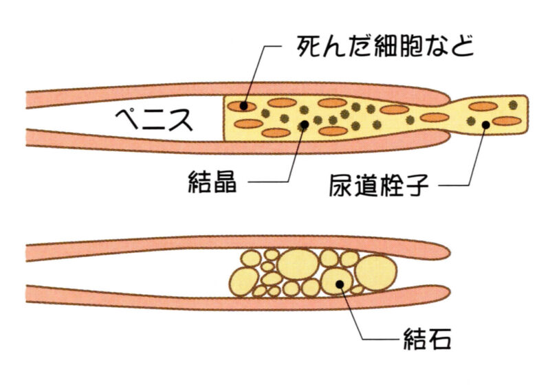 これらの病気の結果として尿道閉塞(おしっこの通り道である尿道が詰まってしまう状態)が起こることがあります。