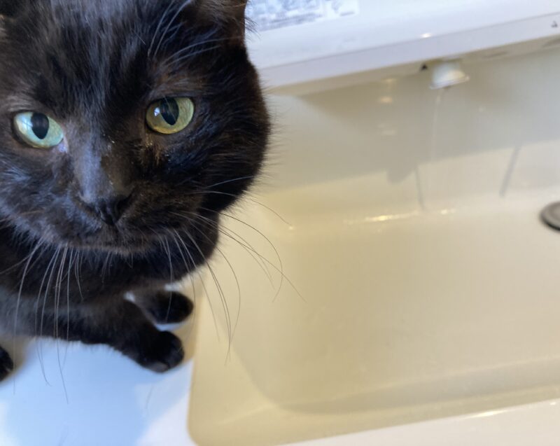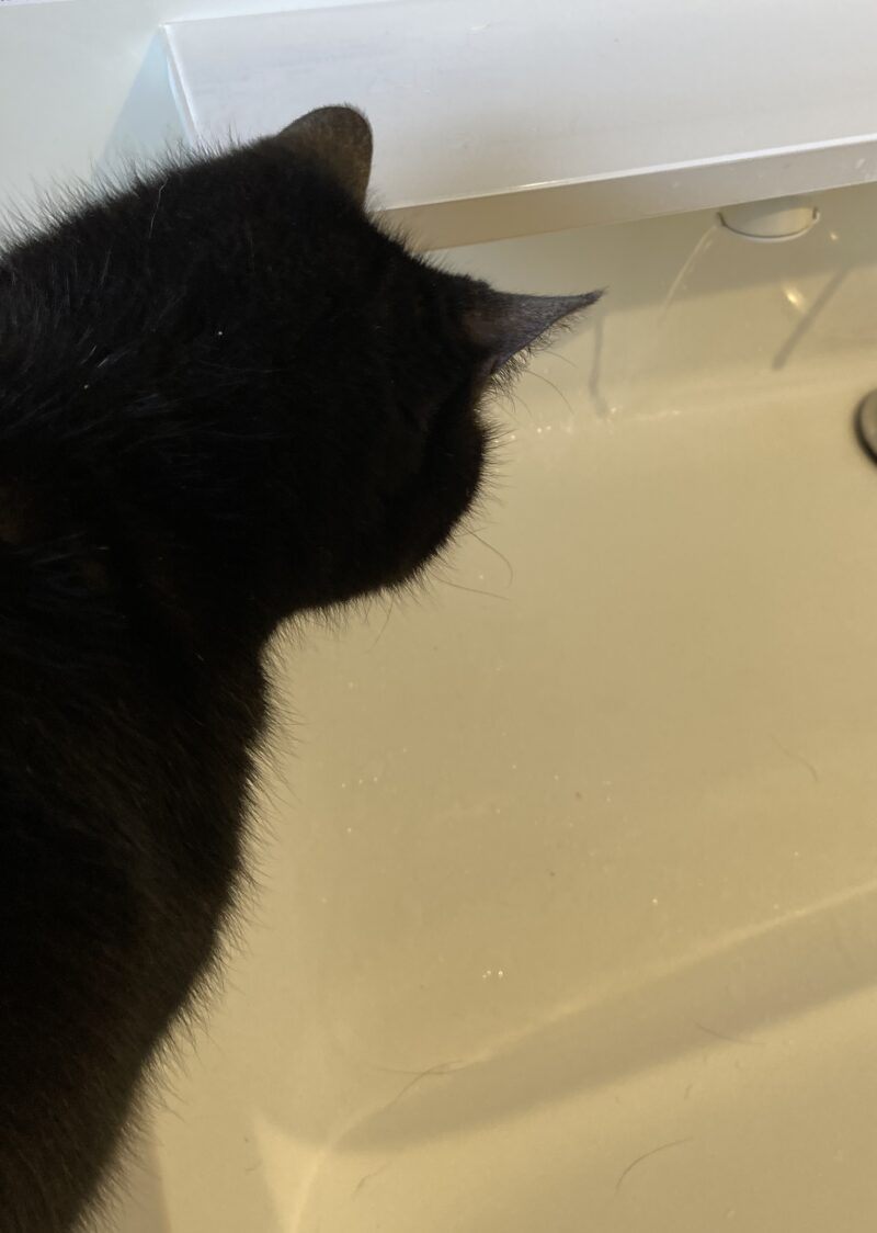 水道の水が気になるけど足が濡れるのを躊躇する瀬七(せな)くん🐈‍⬛