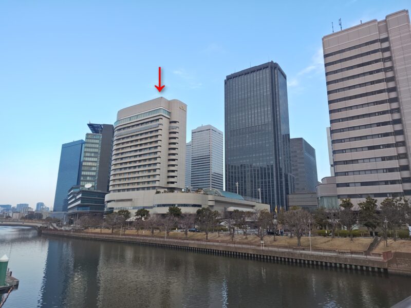 赤矢印の建物が、会場のホテルニューオータニです。