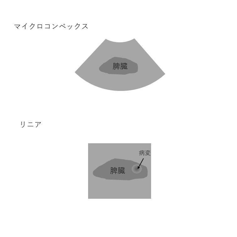 (扇形→マイクロコンベックス、四角→リニア)